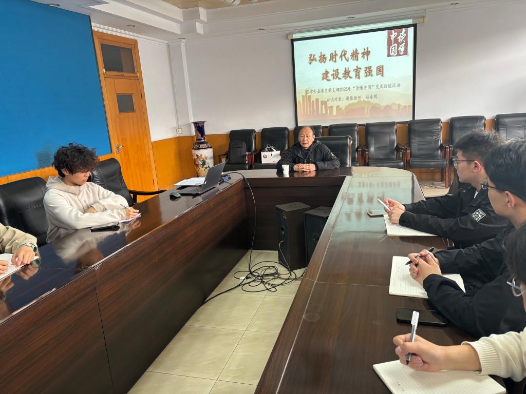 2025年3月28日,pg游戏电子模拟器农学专业学生党支部举办了“弘扬时代精神,建设教育强国”主题“读懂中国”交流会。活动特邀具有40年教龄的退休教师赵春明老师与青年学子面对面座谈,通过回顾学校发展历程、分享育人故事,激励学生传承务实精神,勇担时代使命。农学专业学生党支部党员及入党积极分子16人参加了交流活动。