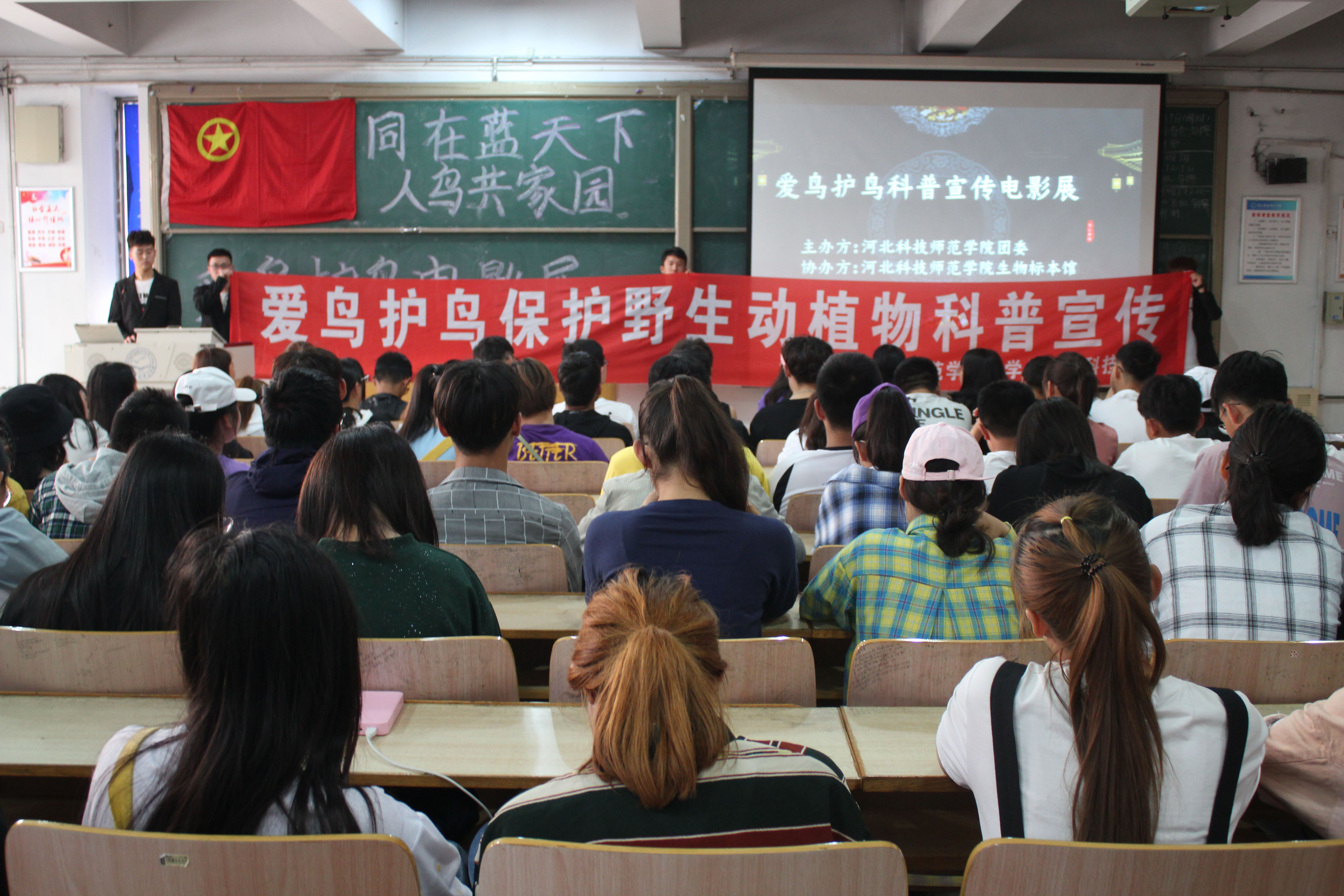 5月11日,由pg游戏电子模拟器主办、学校生物标本馆承办的“同在蓝天下,人鸟共家园”鸟类电影展在昌黎校区热播,题材选自人文地理纪录片《人与自然》中以“保护鸟类”为主题的《鸟类生活》系列影片。100名来自相关专业的学生参加了观影活动。