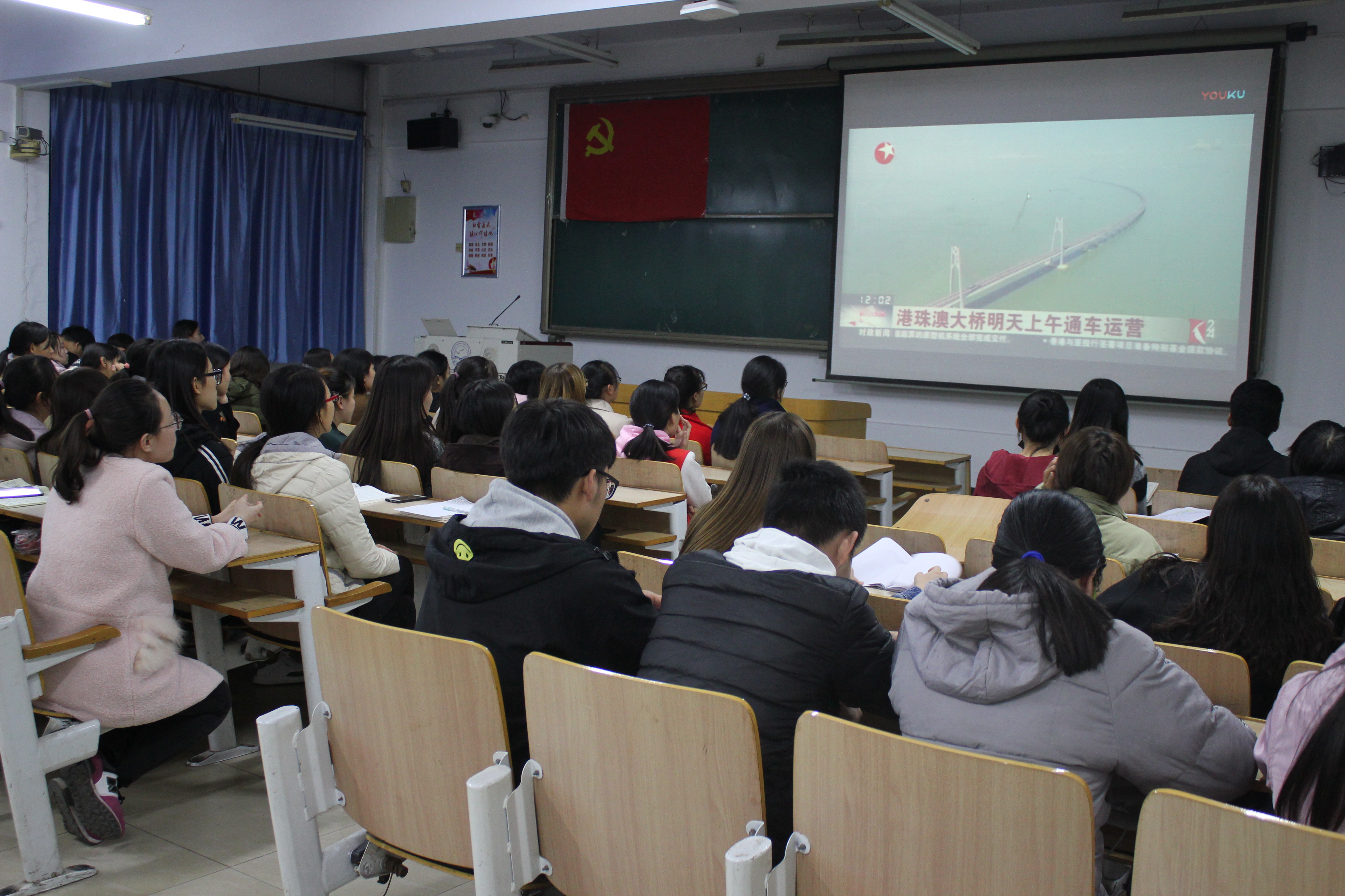 2018年10月23日上午,港珠澳大桥开通仪式在珠海公路口岸举行。世界上第一跨海大桥——“港珠澳大桥”正式建成通车,为全世界瞩目。为庆祝我国桥梁建设事业这一伟大壮举,弘扬中华民族艰苦奋斗、自力更生的崇高精神,感怀改革开放的历史性成就,增强民族自豪感。10月28日晚,pg游戏电子模拟器党委分两场组织青年学生党员、入党积极分子和共青团员观看了大型纪录片《港珠澳大桥开通仪式》和《港珠澳大桥》等视频资料,300名学生参加了活动。