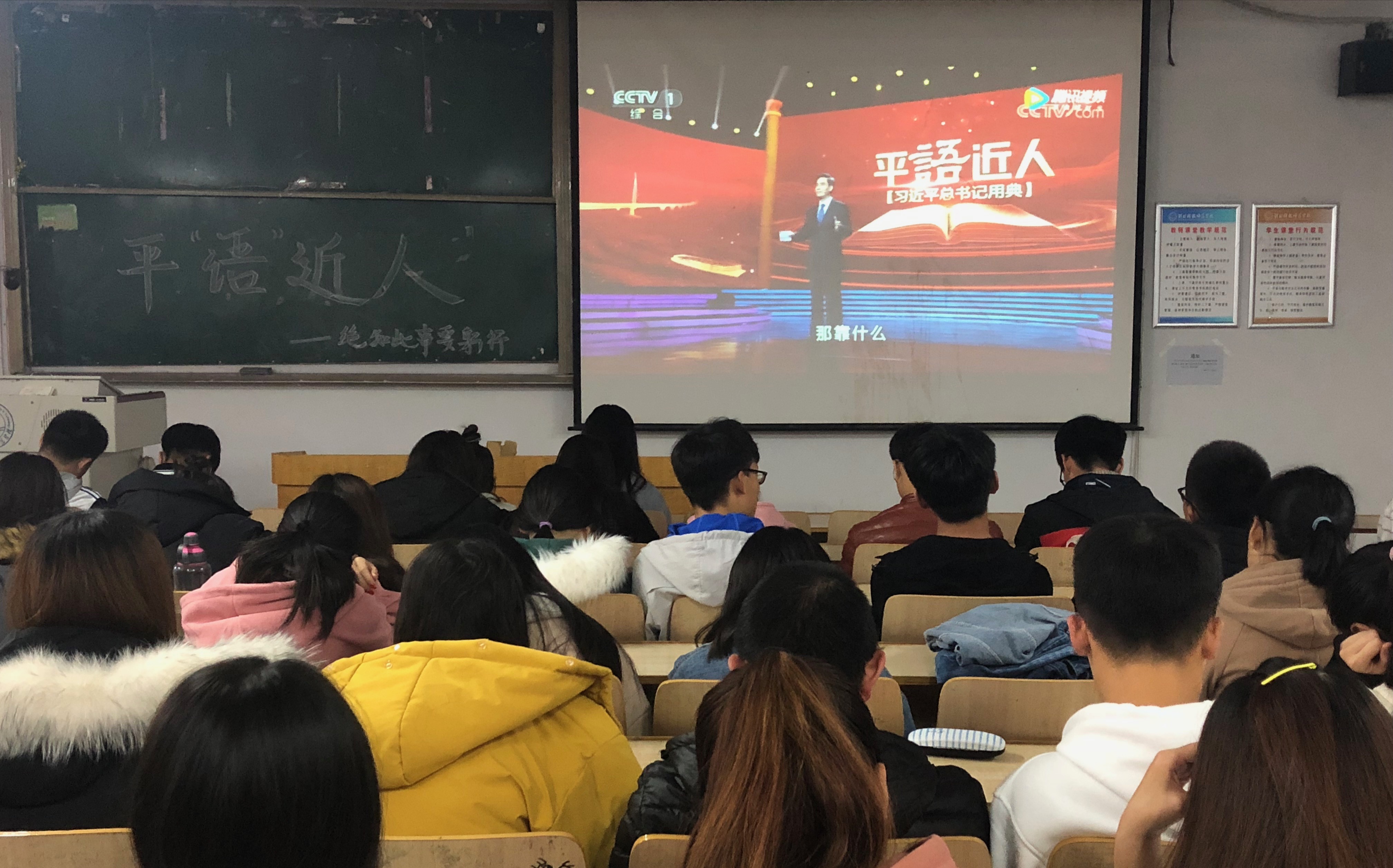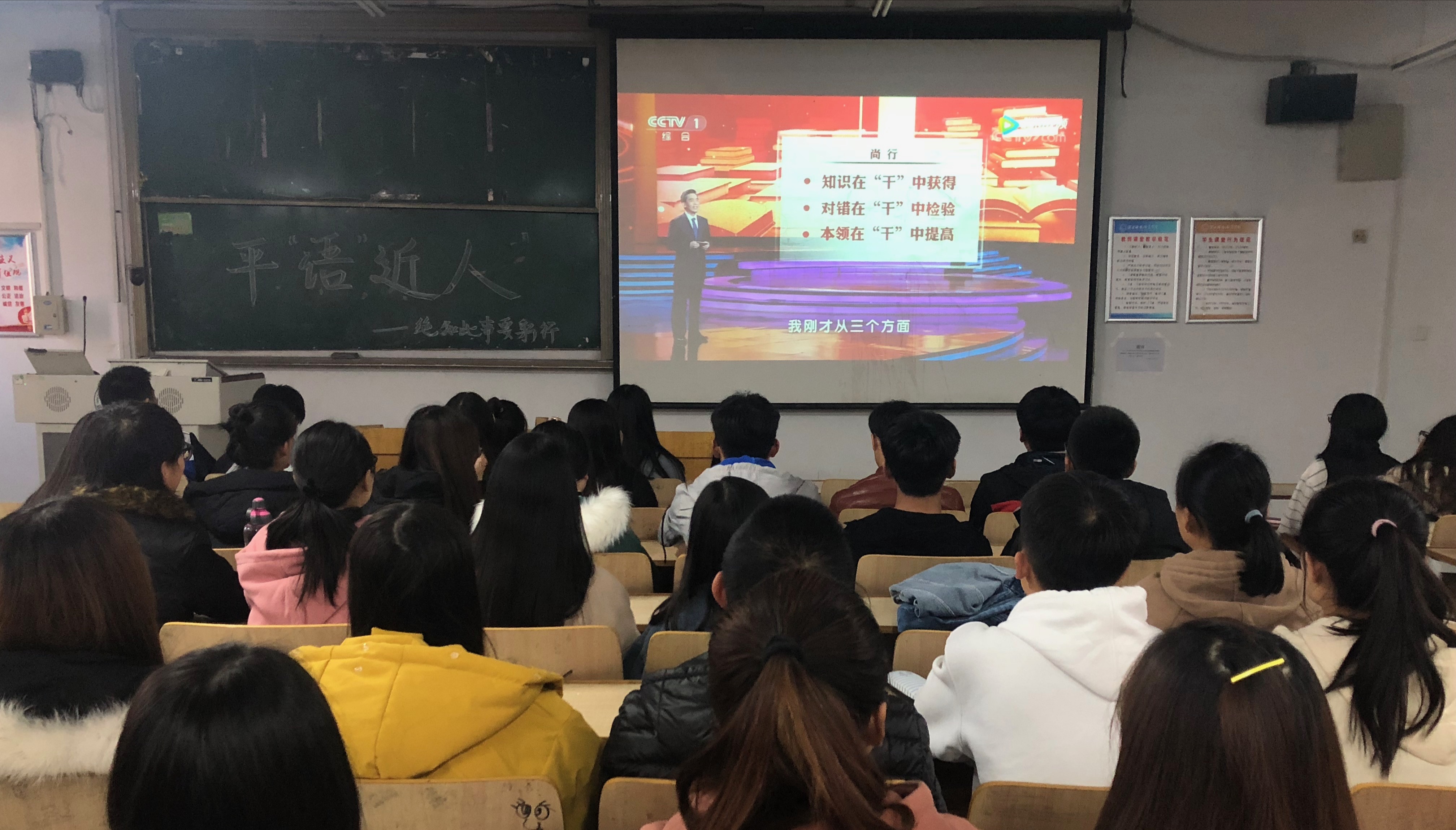 为不断把学习十九大活动引向深入,进一步推动习近平新时代中国特色社会思想的生动阐释与广泛传播。2018年11月10日,pg游戏电子模拟器党委分两场组织学生党组织、学生班团组织近280名青年学生党员、入党积极分子、共青团员等学习收看了中共中央宣传部、中央广播电视总台联合创作的《百家讲坛》特别节目《平“语”近人——习近平总书记用典》。在学院广大青年学生中营造浓厚的学习习近平新时代中国特色社会主义思想的氛围。