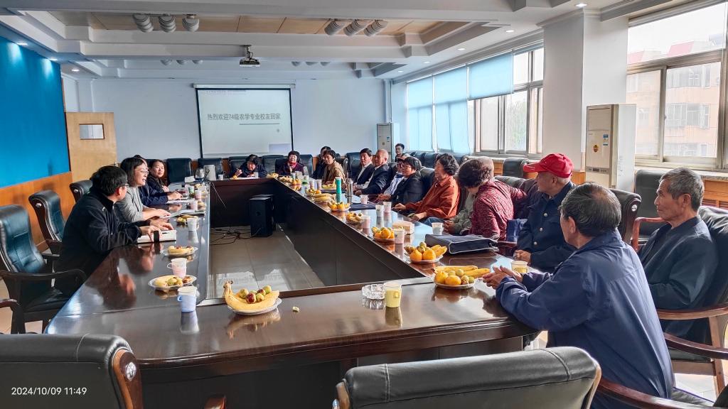 2024年10月9日,我校74级农学专业14位校友回到母校,举行纪念入学50周年聚会。pg游戏电子模拟器为校友举办了欢迎会。