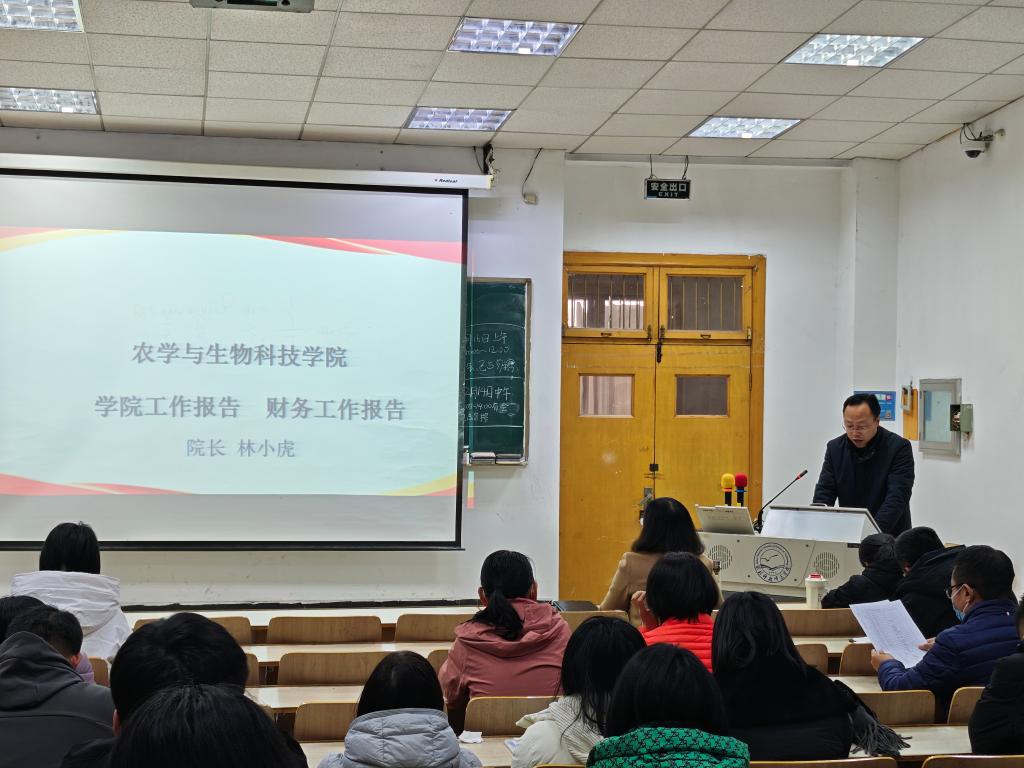按照既定程序,林小虎院长作2025年学院工作报告。报告全面回顾了过去一年学院各项工作的开展状况,系统梳理了学院在教学、科研、学生工作、社会服务等领域所取得的成效,并深入剖析了现存的问题。此外,报告还明确指出了学院未来的发展规划,描绘了一幅美好的愿景。随后,林小虎院长向大会汇报了学院经费的使用情况。