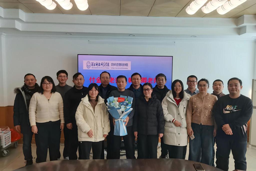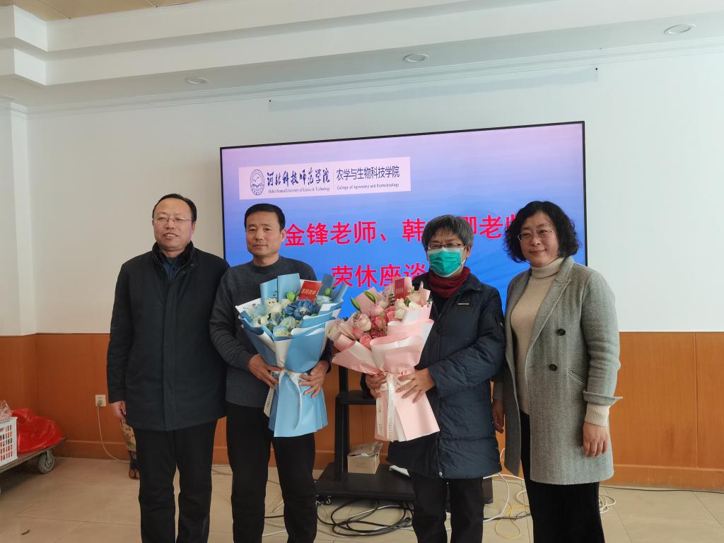 2026年1月7日,pg游戏电子模拟器在昌黎校区会议室举办座谈会,欢送付金锋、韩志卿两位教师光荣退休。学院党政领导、农学教学部和资环教学部教师参加了本次座谈会。